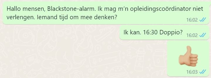 Van alle opdrachten in de Leergang Onderwijskundig Leiderschap bracht Blackstone de gemoederen het meest in beweging. Een jaar na de afronding konden er nog berichtjes opduiken in de groepsapp.